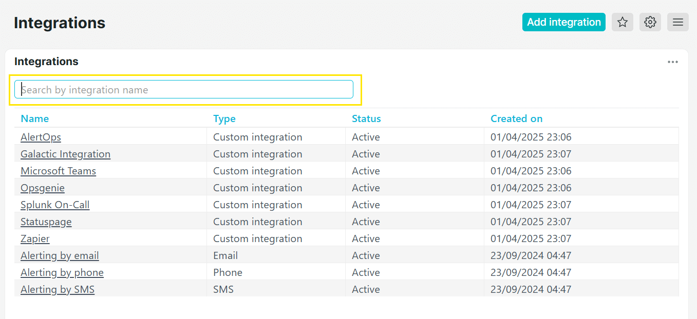 De pagina Integratiesoverzicht bevat nu een filterfunctie voor gebruikers met meerdere integraties. Hiermee kunt u eenvoudig specifieke integraties op naam beheren en zoeken.