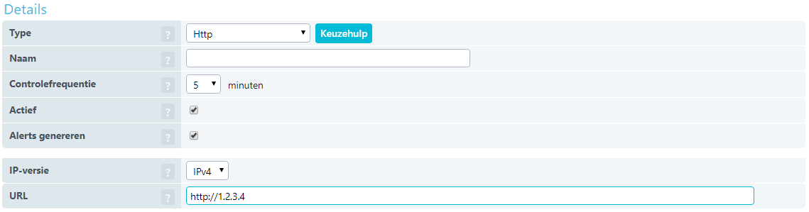 U kunt dit type monitoring configureren met HTTP-, HTTPS- en webservicecontroleregels. Helaas werkt dit niet met de Full page check en Transactie monitoring.